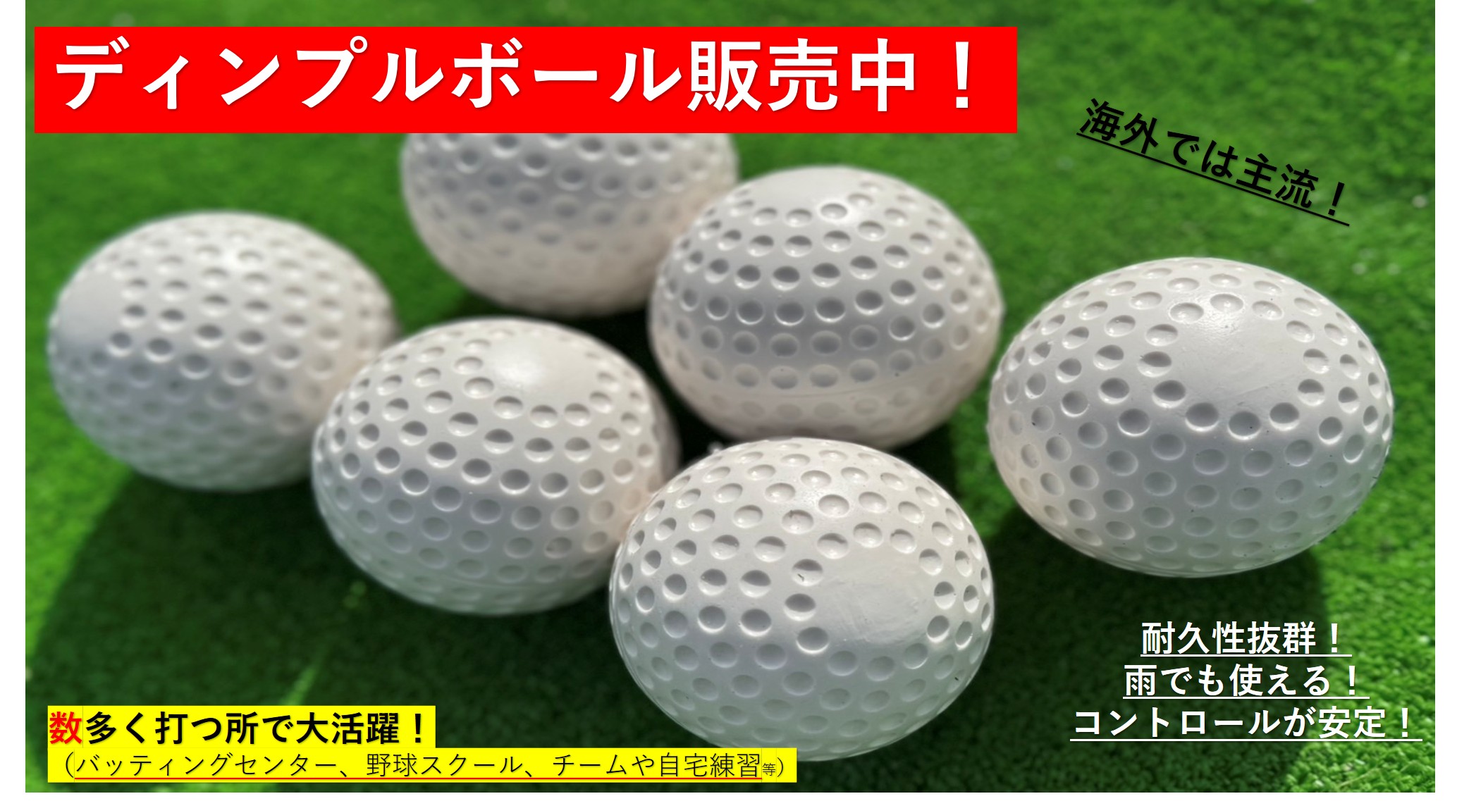 硬式球より耐久性があり、雨を気にせずご利用でき、濡れても拭くだけでOK!! ご自宅やチームの練習にディンプルボールはいかがですか!
