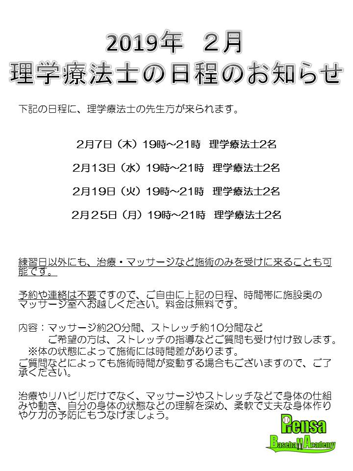 • 2月の理学療法士のお知らせ